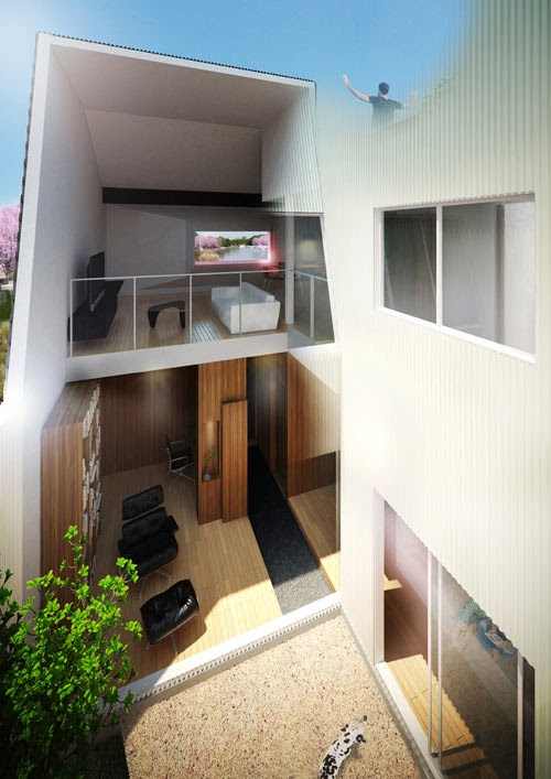 The courtyard, an intimate private garden, forms part of the environmental funnel to dissipate hot air during summer.